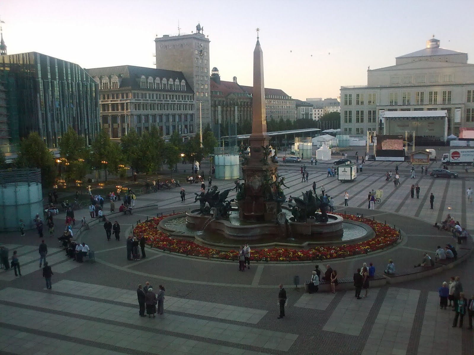 Nesta praça, Augustus, assistimos ao terceiro Concerto: Gewandhauseorchester e Riccardo Chailly, a tocarem no palco montado em frente à Ópera. Sentados no chão, muito calor, muita gente e boa música: